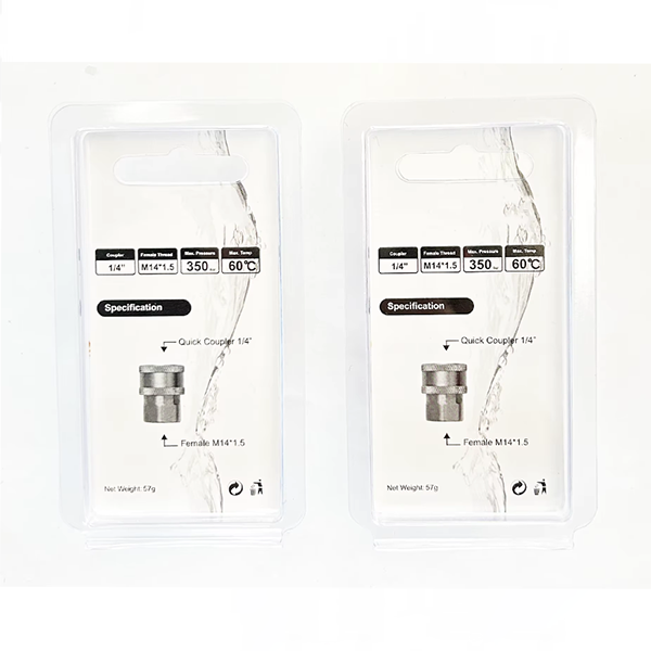 Le specifiche di prodotto specifiche di questo prodotto sono le seguenti. Un'estremità è con filettatura femmina M14×1,5, con un diametro di 12,4 mm, e l'altra estremità è un accoppiatore 1/4, con un diametro di 12 mm. La dimensione della filettatura è rigorosamente controllata, in modo da potersi adattare con precisione alle relative apparecchiature di pulizia per garantire una tenuta stabile durante la connessione. Il materiale dell'attacco rapido in ottone Two Touch da 1/4 di pollice è ottone. Il materiale in ottone ha una buona resistenza alla corrosione e può rimanere stabile a lungo in ambienti di lavoro umidi. Non è facile provocare reazioni chimiche che influiscono sulla connessione stabile. Allo stesso tempo, il materiale in ottone ha anche una certa resistenza, quindi, di fronte all'impatto del flusso d'acqua ad alta pressione, può anche avere una certa resistenza alla pressione, che non è facile da rompere, compromettendo la tenuta complessiva. La struttura Two Touch del prodotto stesso rende più conveniente il processo di installazione e smontaggio. Finché miri alla parte che deve essere collegata al connettore e la spingi leggermente, la connessione può essere completata. Durante lo smontaggio, l'operazione inversa può completare il lavoro di separazione. L'intero processo non necessita di essere assistito da strumenti complessi e richiede pochissimo tempo. , migliorando notevolmente l'efficienza del lavoro e non limita il numero di utenti e anche i non professionisti possono iniziare facilmente.