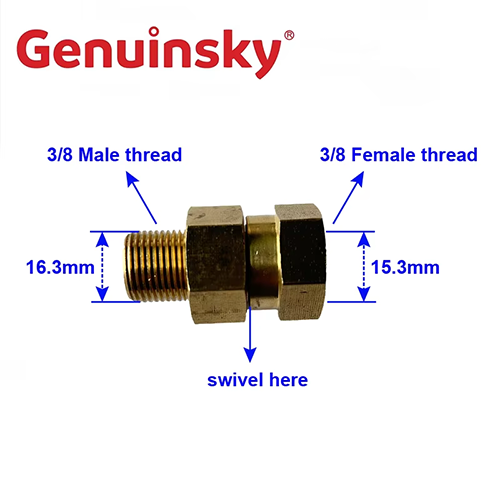 Un'estremità di questo adattatore di connettori di montaggio girevole in ottone è 3/8 filo maschile, con un diametro di circa 16,3 mm; L'altra estremità è un filo femminile da 3/8, con un diametro di circa 15,3 mm, che è dotato di una pistola di pulizia ad alta pressione per lavorare nell'operazione di pulizia. L'adattatore del connettore di montaggio girevole in ottone può ridurre l'avvolgimento della conduttura nell'operazione di pulizia, rendere l'operazione più flessibile e migliorare l'efficienza del lavoro.