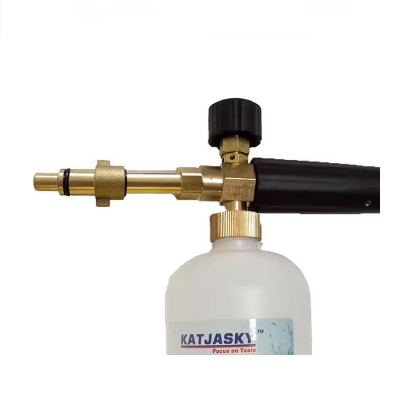 Lancia in schiuma della lavatrice per auto è un accessorio centrale della rondella ad alta pressione. L'uso principale è mescolare sapone e altri detergenti e acqua attraverso la pressione per formare schiuma. La schiuma può coprire delicatamente lo sporco sul corpo dell'auto. Questo metodo di pulizia può ridurre il danno al corpo dell'auto. Dopo l'uso, dovresti anche mantenerlo e pulirlo in tempo per ottenere un'esperienza d'uso migliore e più duratura. Dopo l'uso, si consiglia di sciacquare l'interno della bottiglia o l'ugello con acqua. Il residuo dell'agente di pulizia può causare blocco e influire sull'uso successivo. Conservalo in un luogo asciutto e fresco in tempi ordinari per evitare che le alte temperature e l'umidità influentino il prodotto stesso.
