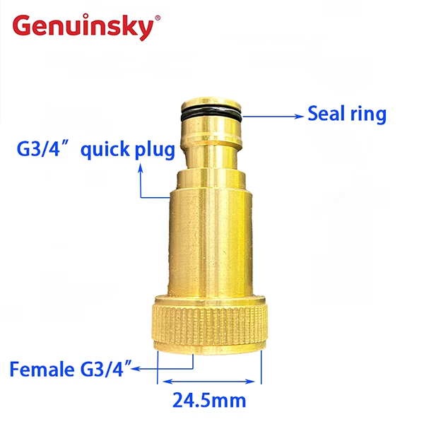 Filtro dell'acqua di ingresso in rame per lavatrici di auto di Yili Lutian, Batman, Falcon e Poseidon. Un'estremità del prodotto è una spina rapida G3/4 ", che ha anche un anello di tenuta. L'altra estremità è femmina G3/4", con un diametro di 24,5 mm.